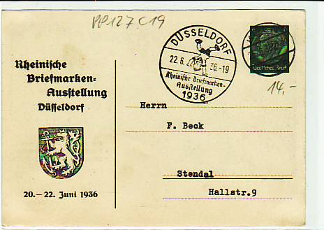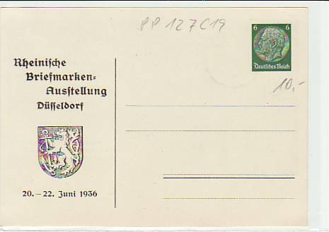 63691 [m65460] |  | Privat-Ganzsache Briefmarken Ausstellung Düsseldorf PP127C19 | 15.00EUR 11.25EUR | In den Warenkorb |