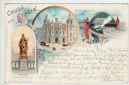 Berlin Mitte Friedrichstrasse Bahnhof Litho 1897