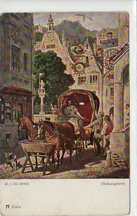Pferdekutsche Künstlerkarte Paul Hey Postkutsche