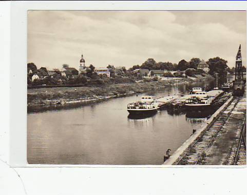 Riesa an der Elbe Frachtschiffe Eisenbahn 1970