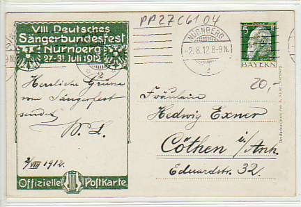 65600 [m65289] |  | Nürnberg Sängerbundfest Privat-Ganzsache Bayern PP27c6104 | 21.00EUR 15.75EUR | In den Warenkorb |