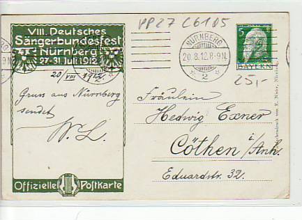 65599 [m65290] |  | Nürnberg Sängerbundfest Privat-Ganzsache Bayern PP27c6105 | 26.00EUR 19.50EUR | In den Warenkorb |