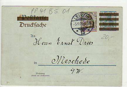 65580 [m65345] |  | Leipzig Gebrüder Senf Postwertzeichen Privat-Ganzsache PP41B501 | 21.00EUR 15.75EUR | In den Warenkorb |