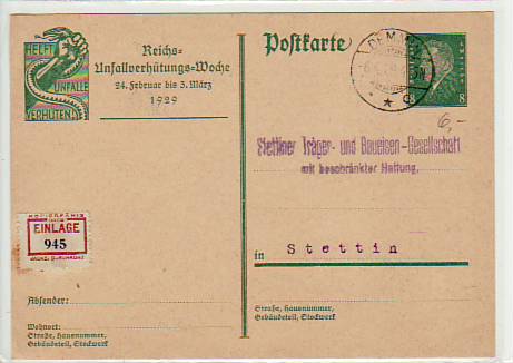 65573 [m65382] |  | Unfallverhüttung Privat-Ganzsache Demmin 1929 | 6.00EUR 3.00EUR | In den Warenkorb |