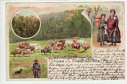 Friedrichroda in Thüringen Kühe,Kuhherde Litho 1898