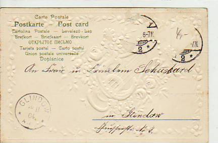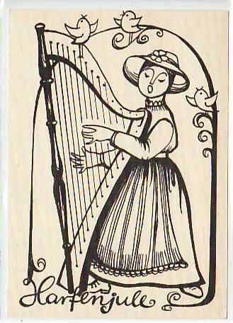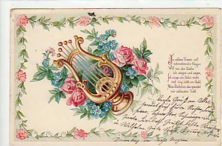 Musikinstrumente Musiker Harfe Prägekarte 1904