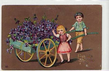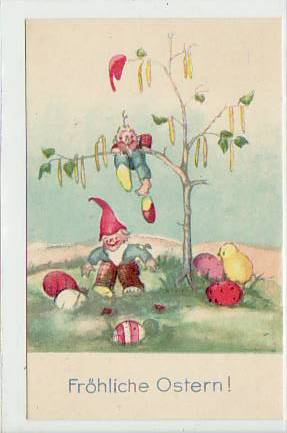 Glückwunsch Frohe Ostern Zwerge ca 1950