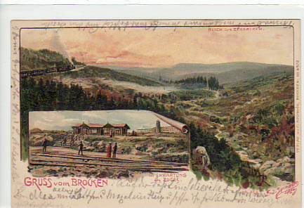 Brocken im Harz Künstlerkarte Erik Spindler,Bahnhof,Brockenbahn