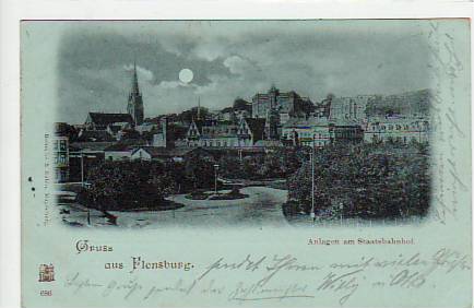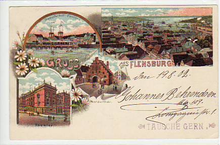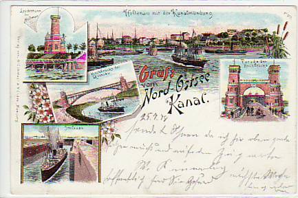 Kiel-Holtenau Nord-Ostsee-Kanal Litho 1898 Bahnpost Flensburg