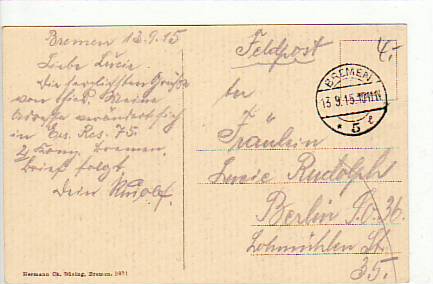 Osterfeld Patriotische AK Bahnpost Delmenhorst-Osnabrück 1915
