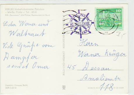 Motorschiff Weiße Flotte Potsdam Schiffspost 1978