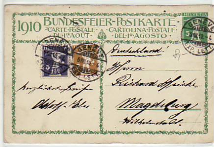 Privat-Ganzsache Geneve Schweiz Bundesfeier 1910