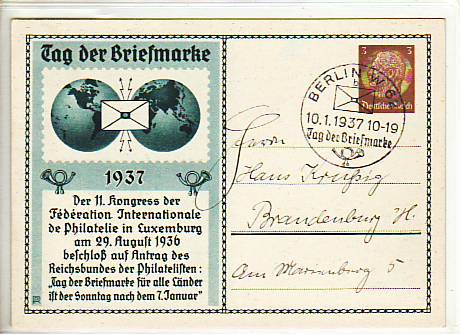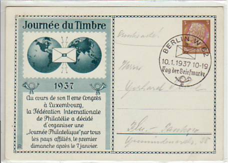 Luxemburg-Berlin Tag der Briefmarke 1937 Privat-Ganzsache