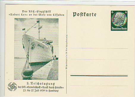 Lissabon KDF Schiff Robert Ley Privat-Ganzsache 1939