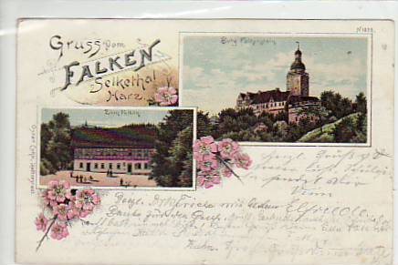 Falken Selkethal Burg Falkenstein bei Harzgerode,Meiseberg Litho