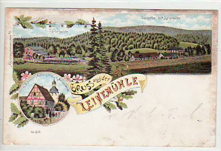 Leinemühle Leinethal Litho Ansichtskarte Stempel Mansfeld 1899