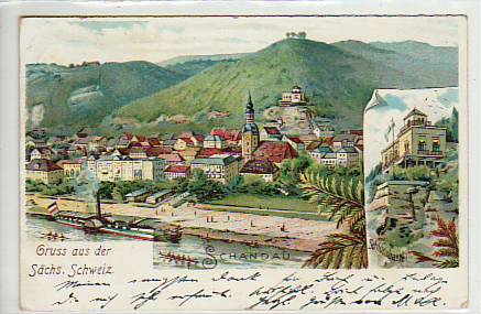 Bad Schandau Litho mit Raddampfer 1900