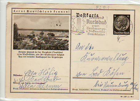 Bergstadt Neustädel Bergsee Filzteich Privat-Ganzsache 1939