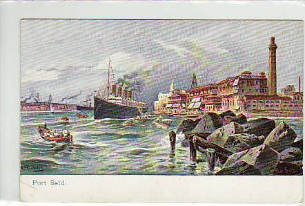 Port Said Ozeandampfer Künstlerkarte Peslberg Egypten Ägypten
