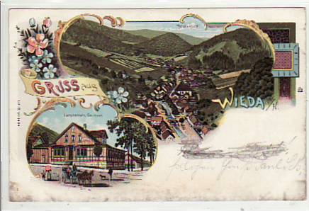 Wieda im Harz Litho mit Kamhenkel´s Gasthof 1904