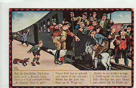 72907 [17323] |  | Eisenbahn Bahnhof Fräulein Eisenbahnbeamter Künstler Korfe | 5.00EUR 2.50EUR | In den Warenkorb |