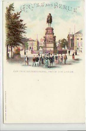 Berlin Mitte Unter den Linden Friedrich Denkmal Litho ca 1900