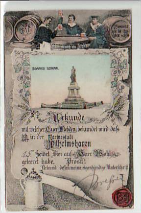 75505 [2940w162] |  | Wilhelmshaven AK als Urkunde, Bier,Bierfass 1907 | 15.00EUR 11.25EUR | In den Warenkorb |