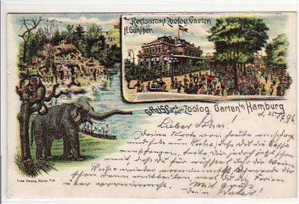 75698 [40231] |  | Tiere Elefanten Zoologischer Garten Hamburg Litho Vorläufer 1895 | 20.00EUR 15.00EUR | In den Warenkorb |