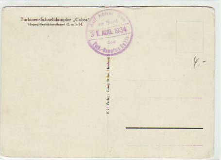 75691 [m11021] |  | Dampfer Cobra Hapag-Seebäderdienst 1934 | 4.00EUR 2.00EUR | In den Warenkorb |