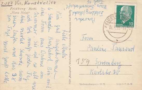 Feldberg in Mecklenburg Haus Holst 1965