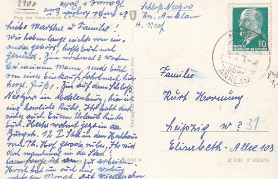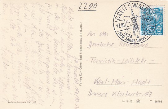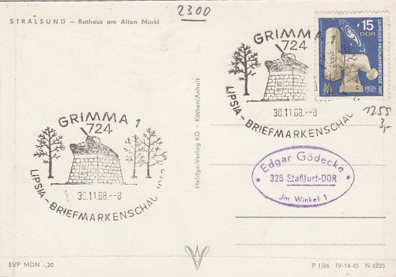 Stralsund 1966 Sonderstempel Grimma Lipsia Briefmarkenschau 1968