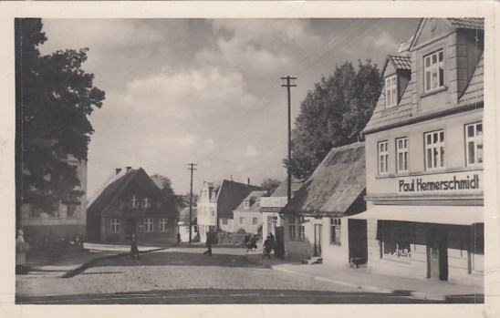 Bergen auf Rügen Straße mit Laden Paul Hemerschmidt 1953