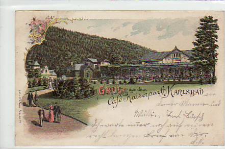 79357 [760317] |  | Karlsbad CSSR Cafe Kaiserpark Litho 1898 | 14.00EUR 10.50EUR | In den Warenkorb |