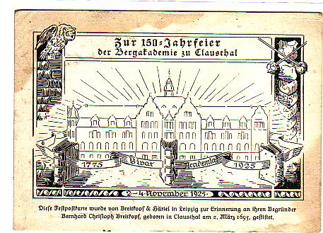 79853 [3392w62] |  | Clausthal-Zellerfeld im Harz Anlaß 150 Jahre Bergakademie 1925 | 15.00EUR 11.25EUR | In den Warenkorb |