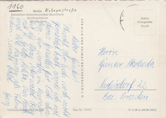 Berlin Treptow Rundfunk Studiogebäude Großer Saal 1959