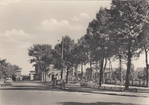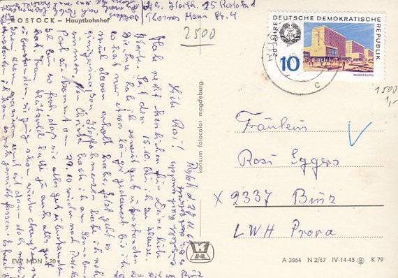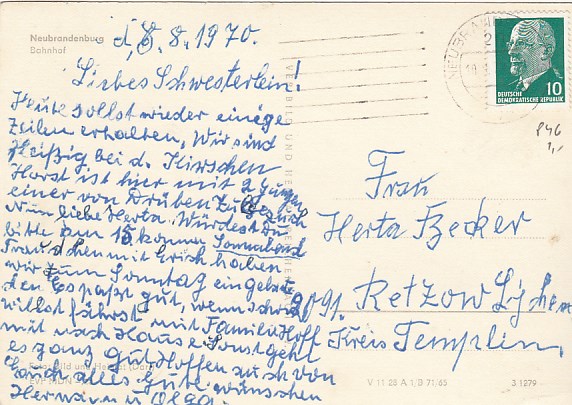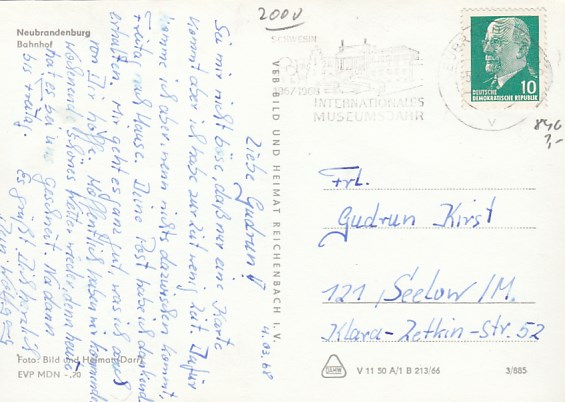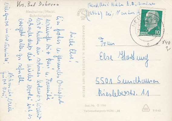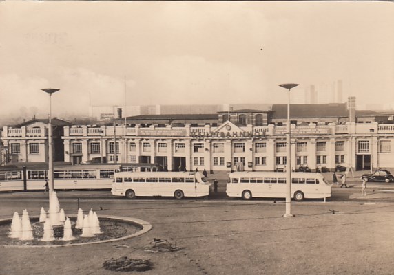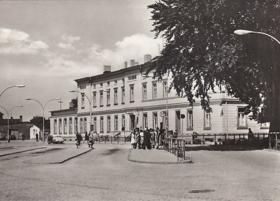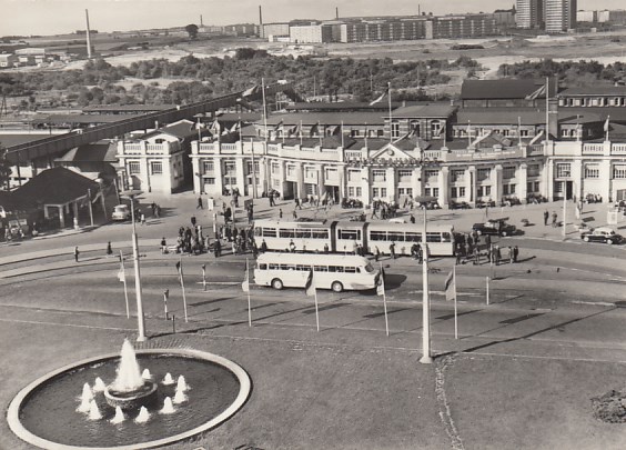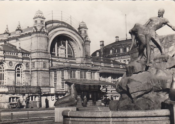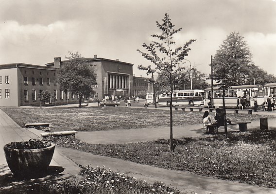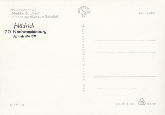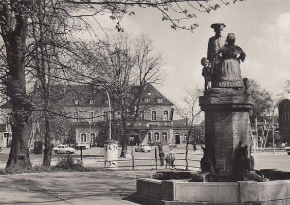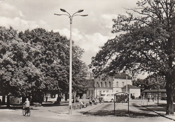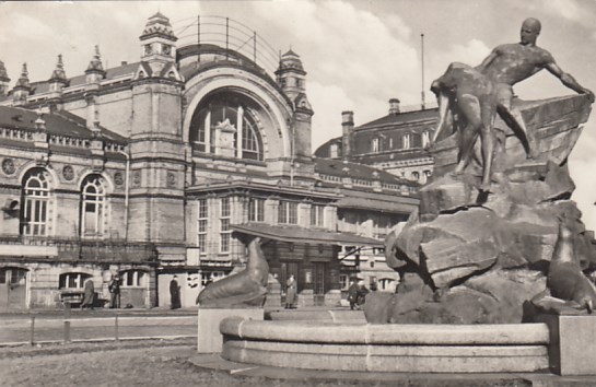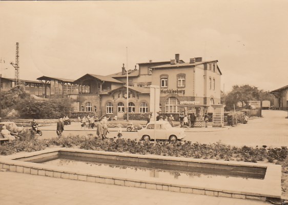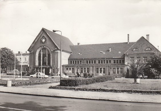 Bahnhof Neubrandenburg mit Mudder-Schulten Brunnen 1969