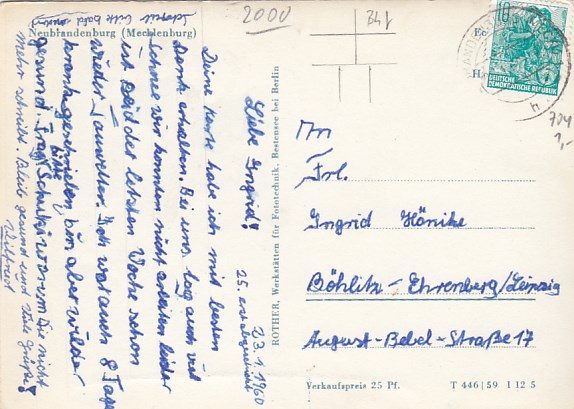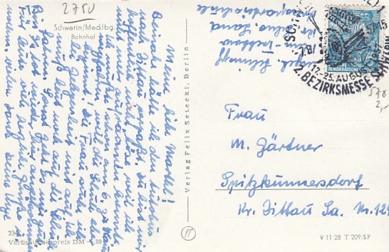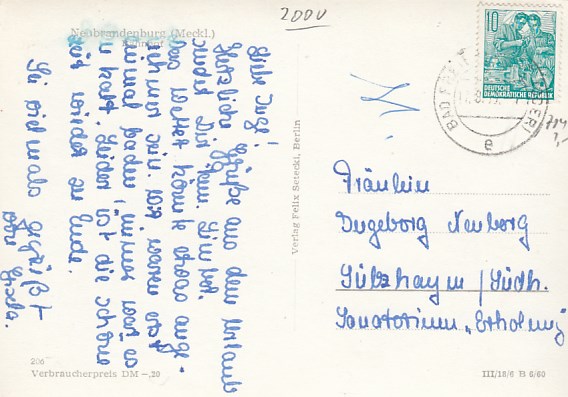 Neubrandenburg an der Tollense mit Bahnhof 1959