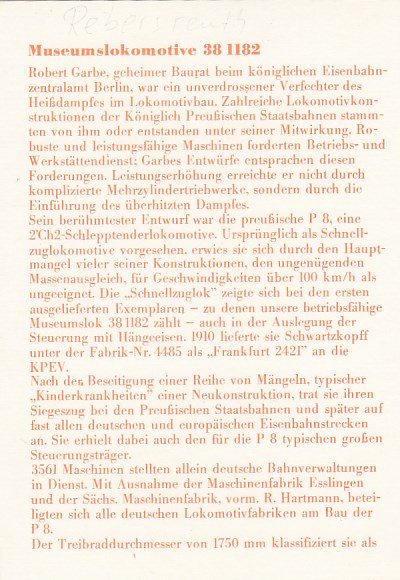 Eisenbahn Dampflokomotive Rebersreuth