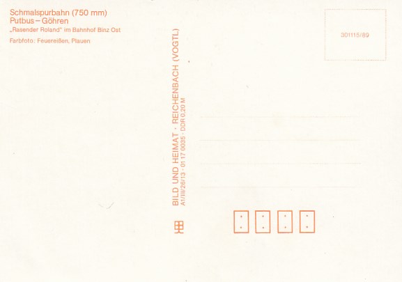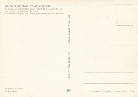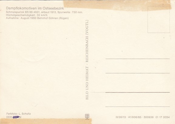 Eisenbahn Dampflokomotive Kleinbahn Rügen Rasender Roland 1960