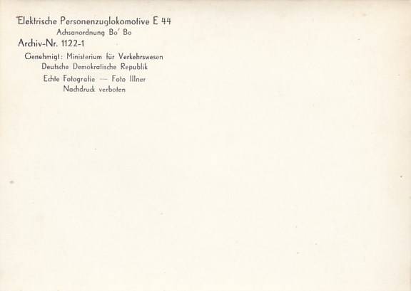 Eisenbahn Lokomotive E 44 DDR Foto Genhmigt Ministerium für Verkehrswesen