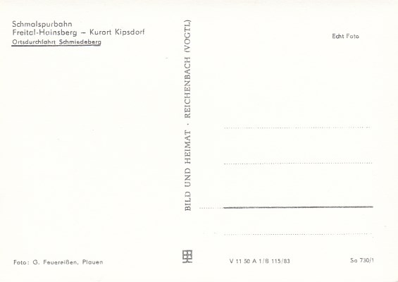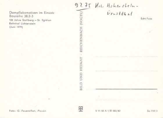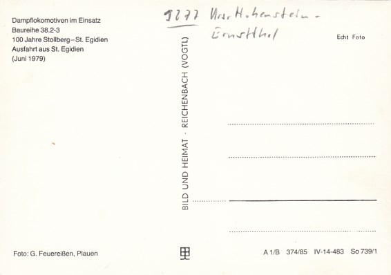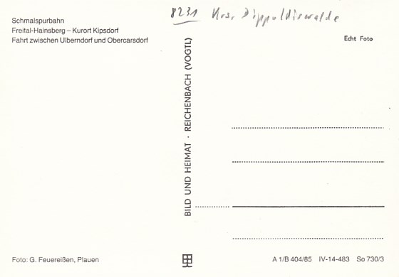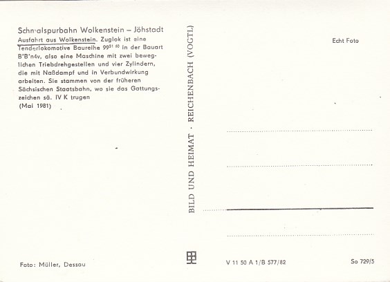 Eisenbahn Dampflokomotive Schmalspurbahn zwi. Ulberndorf und Obercarsdorf