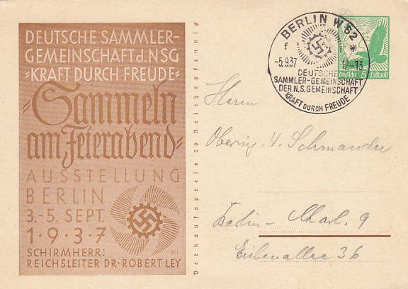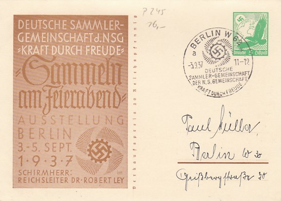 Privatganzsache Briefmarken-Ausstellung Berlin KDF Robert Ley