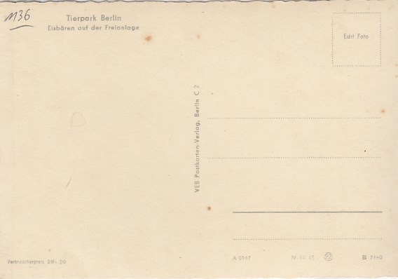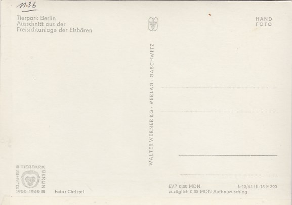 Berlin Friedrichsfelde Tierpark Tiere Eisbären 1966