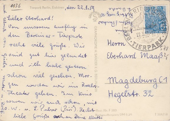 Berlin Friedrichsfelde Tierpark Tiere Eisbären 1958