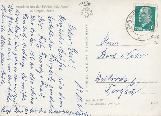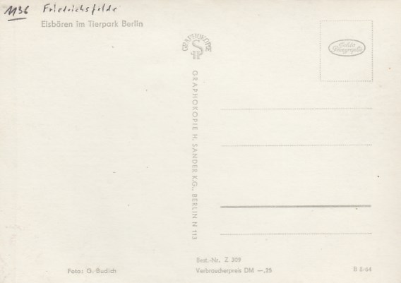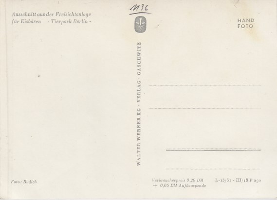 Berlin Friedrichsfelde Tierpark Tiere Eisbären 1961