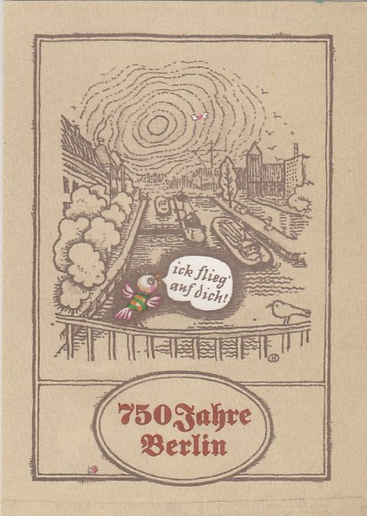Künstlerkarten alte Ansichtskarten 750 Jahre Berlin ick flieg auf dich