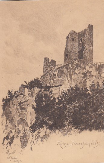 Königswinter am Rhein Drachenfels Künstlerkarte Carl Zander Berlin ca 1900