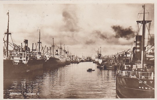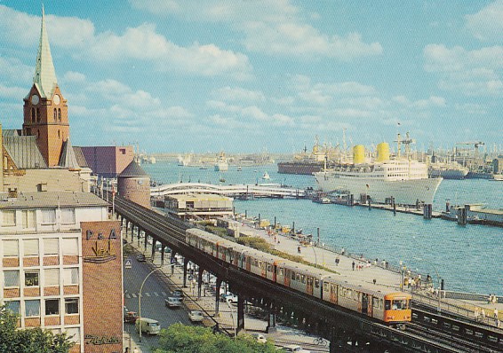 Hamburg Ozeandampfer im Hafen mit Hochbahn
