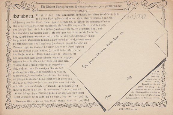 Hamburg Die Flethe Rückseite mit Geschichte der Stadt 1898 Foto Verlag Berlin-Steglitz