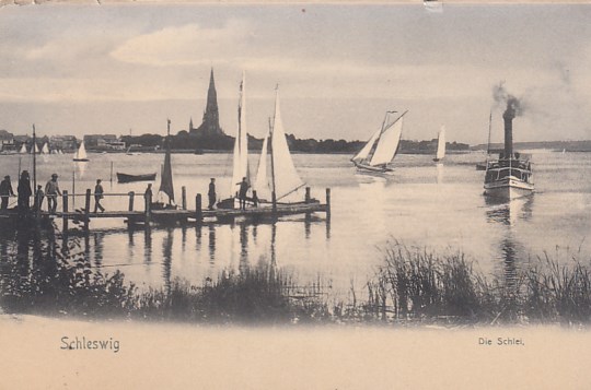 Schleswig in Holstein Segelboote und Motorschiff auf der Schleica 1900